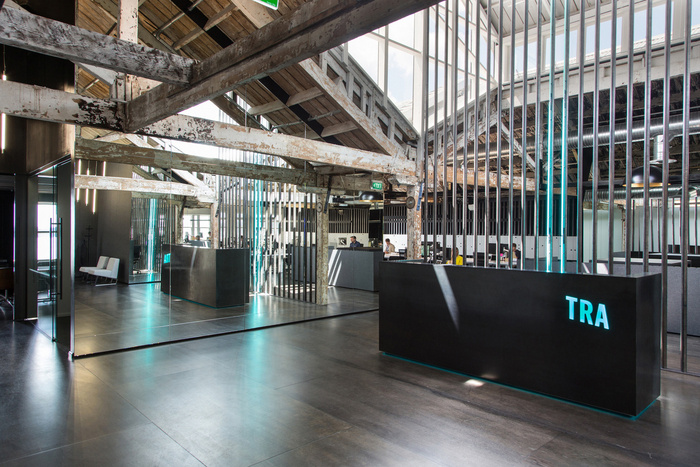 为了保留特色而不是支配现有空间,新空间是通过在现有框架中插入实用的体量来创建的。这些体量随后被镜面面板覆盖,以使原始织物非物质化、反射和突出,特别是现有建筑的历史和古铜色。#办公楼设计装修#