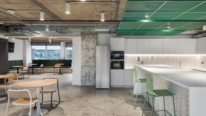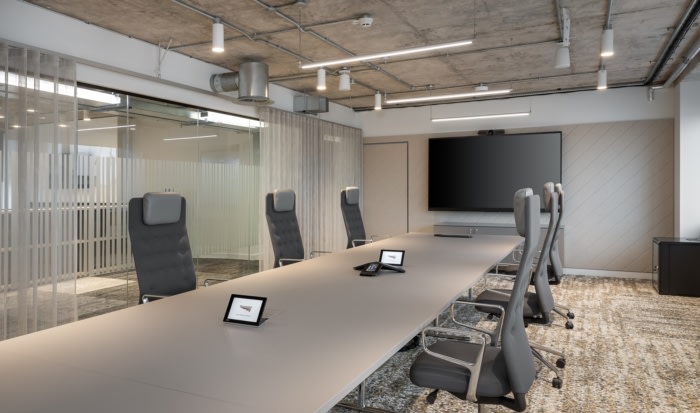 所有必要的门都是自动化的,设计师结合了抗菌材料、占用传感器、定制标牌和许多其他设计元素,以确保企业的员工可以安全返回办公室并对此充满信心。设计团队还提供了一个定制的培训视频,帮助教员工如何使用他们的新工作空间。#办公室设计方案#