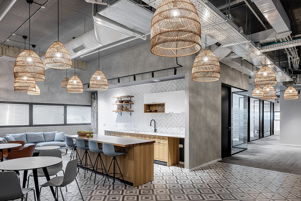 空间设计:这些元素都融合在明亮优雅的灰色背景中,营造出一个时尚前沿的办公环境