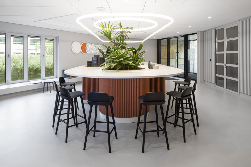 办公室装修设计:圆形的构造与光滑和简洁的建筑风格形成了鲜明的对比