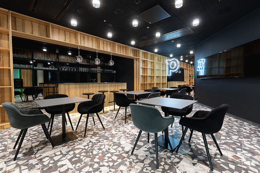 会议室的设计灵感则来源于哈利波特的魔幻世界,在这里员工可以休闲的看着电视聊聊天或来一场游戏比赛,让疲惫的身心重焕活力。Pipedrive布拉格办公室的设计灵感得益于爱沙尼亚文化以及科创企业的文化精神。设计根据企业色彩标识系统,采用绿色和黑色元素来装点室内空间。#空间装修设计#