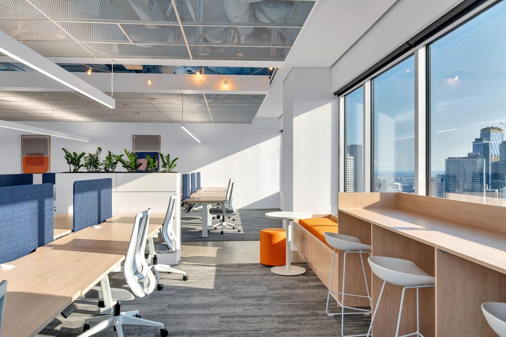 进入一个空间的第一印象非常重要,位于第一处空间的一幅大型墙画带来强有力的视觉冲击。具有时尚气息的航海元素遍及整个室内空间,营造出宁静的氛围和舒适空间体验。第二个空间采用了精致的暗调配色去展现客户多元的身份属性。简约单色调的配色加入了自然的棕褐色、木纹肌理与圆角的细节处理,暗雅却又多姿,赋予空间更多维的时尚解读和视觉体验。第三个空间则极具个性化,明亮的橙色和蓝色与大面积的白色相映衬,彰显出墨尔本创意社区的活力文化。#写字楼装修设计#