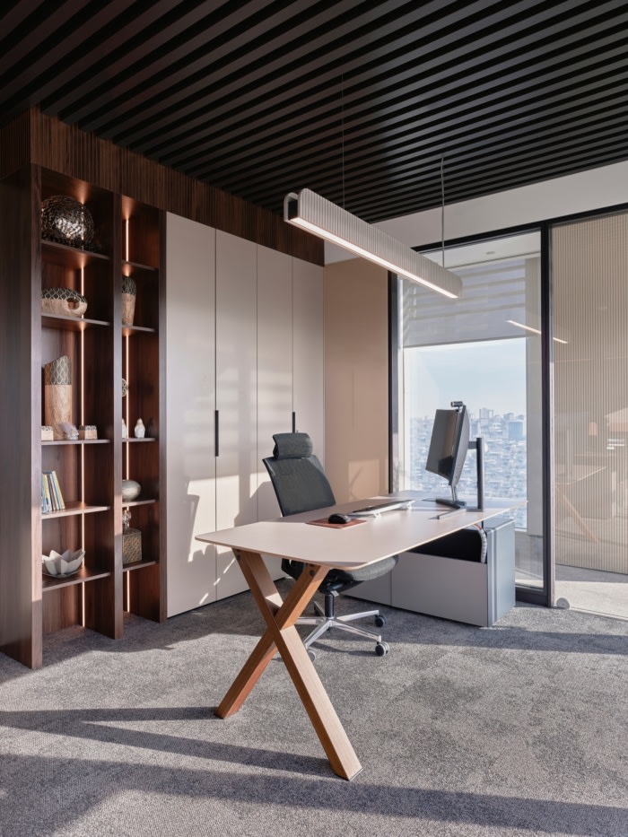 办公室设计的目的是创建一个新的工作场所,成为集团员工和访问办公室的客户的共同联系点。因此,办公室设计的基本原则是使用简单、时尚和现代的线条;从家具摆放到房间的位置,材料和颜色的选择。