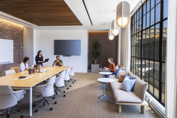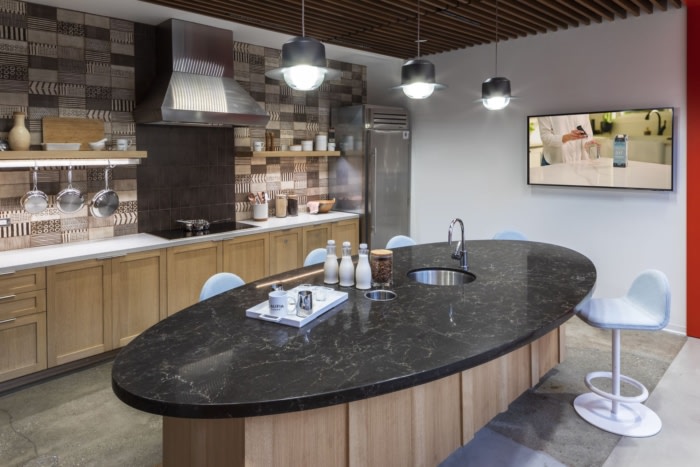 在内部,员工和客人都会受到一家咖啡馆的欢迎,咖啡馆设有酒吧和专门的内部咖啡师——在新的办公室环境中,他类似于有福利的接待员——制作各种咖啡和浓缩咖啡饮料,更不用说软冰淇淋了,所有这些都自然而然地配上加州的植物性牛奶和奶油。#办公室装修公司#