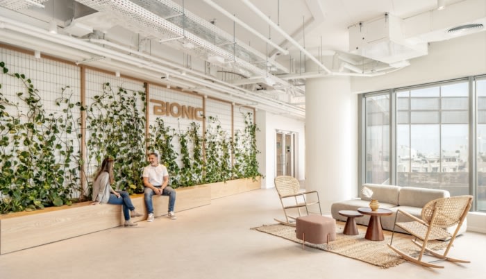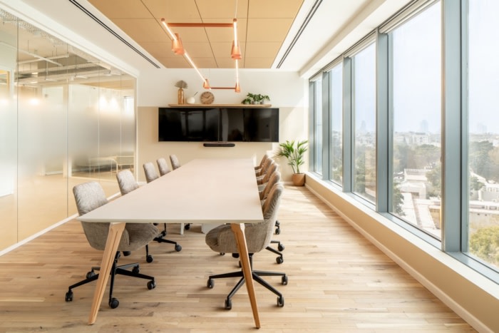 办公室装修设计:用纯白色的天花板平衡了各种纹理、颜色和材料