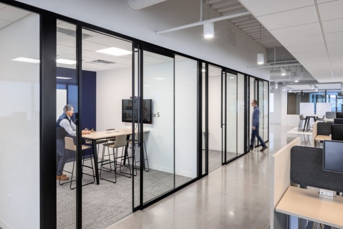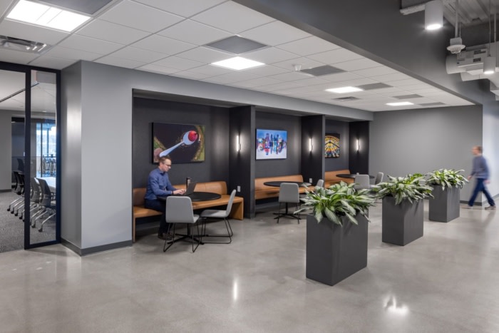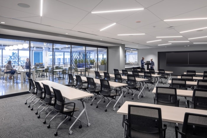 作为一家科技公司,需要一个促进互动并支持不断发展的行业的协同性质的办公室。灵活的空间、移动家具和酒店工作空间为员工提供个性化的工作体验和协作机会。此外,还增加了大量大小和风格的工作环境,包括小型会议室,站立式工作站,视频和电话会议室。#办公室设计装修案例#