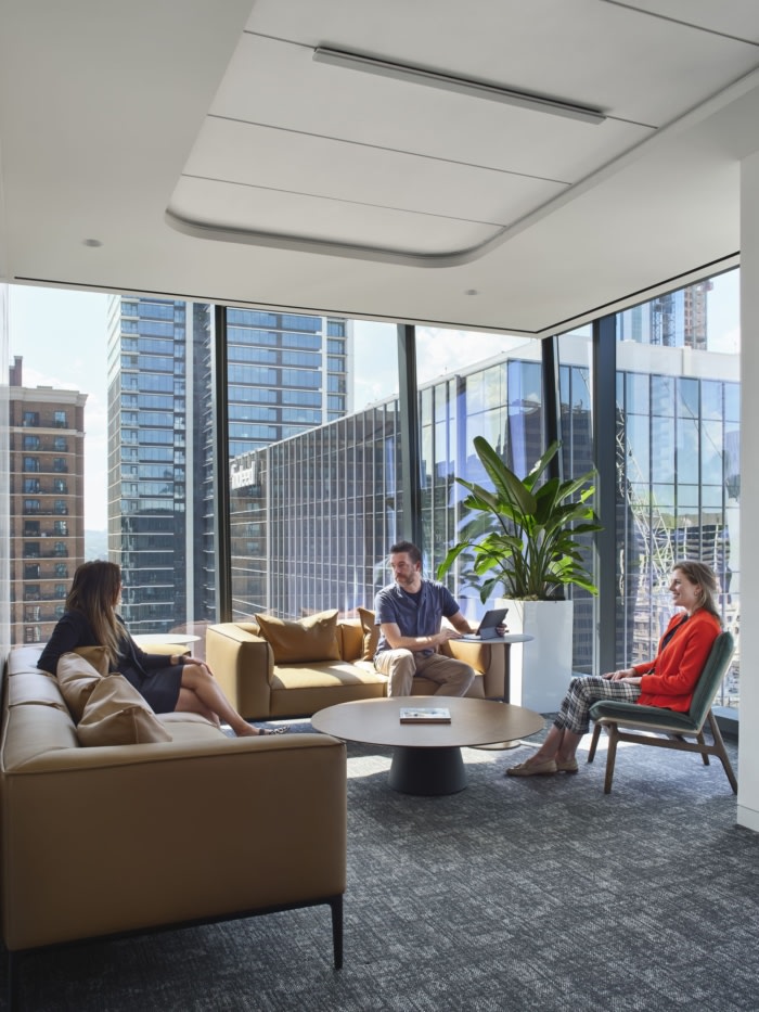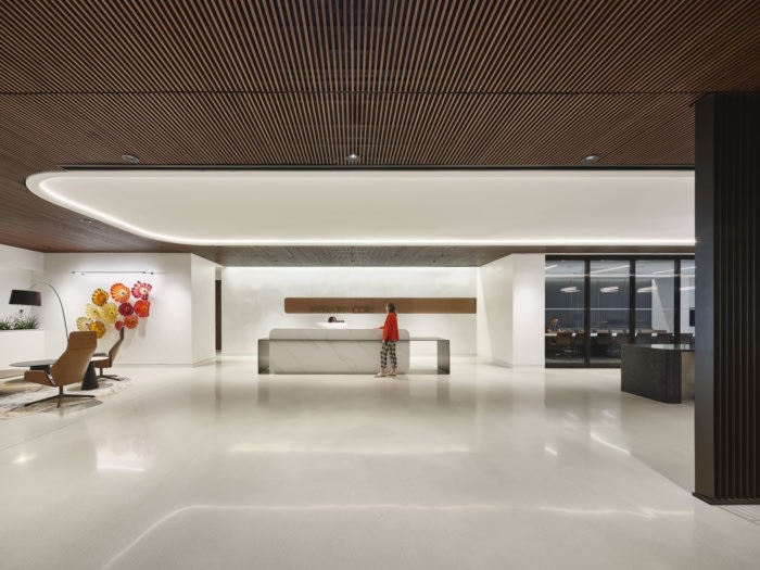 办公室空间设计装修:柔和的边缘、曲线几何形状和线性元素并置
