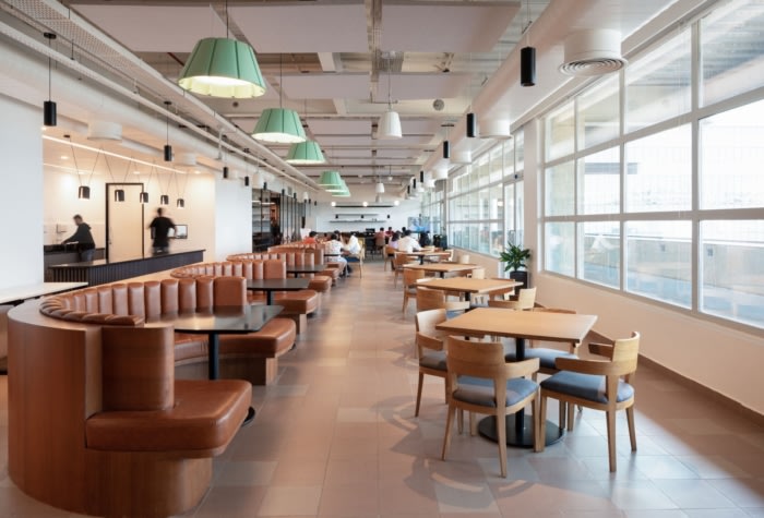 整个30,000平方英尺专门用于在不同时区工作的工程和客户服务团队。大胆而多彩的壁画表达了“团结 - 合作”以及来自各大洲的这些不同团队的聚集在一起,使涟漪成为今天的样子。#办公室空间设计#