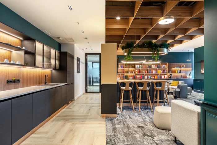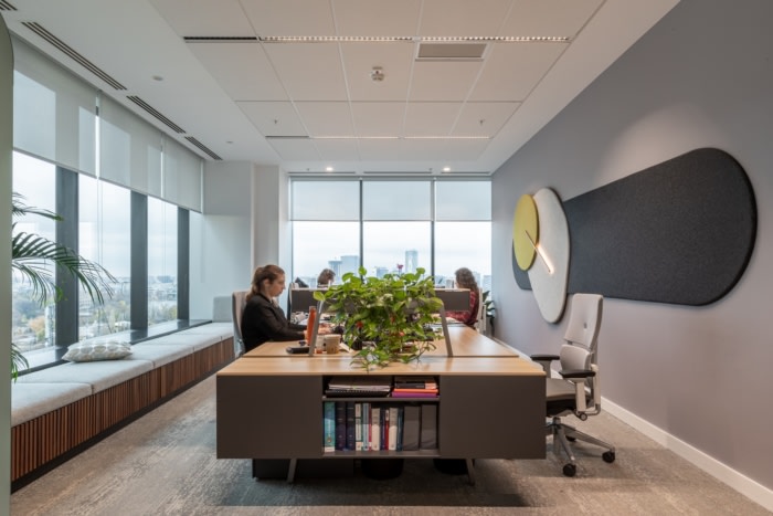 办公室空间设计师帮助企业创建一个空间来满足两个不同的需求:用于正式会议的客户区和为其员工提供的不太正式的工作空间。因此,建筑师提出了一个解决方案,可以组织更多的公共空间,例如一层的接待和会议室,另一层的私人员工区域。