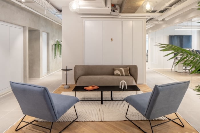 企业的办公室布局自然鼓励团队合作和协作,开放式计划允许不同的团队无缝协作。布局提供了共享的空间和资源,确保每个人都朝着通过技术彻底改变金融业的共同目标而努力。#公司办公空间设计装修案例#