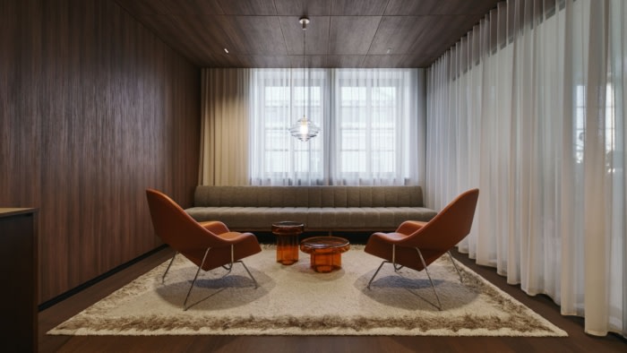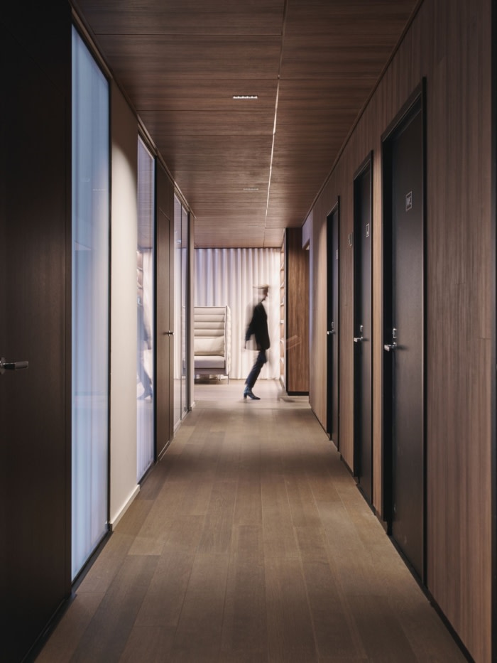 办公室设计过程首先预先确立了一些明确的原则:由于业务由投资银行和证券两个独立的部门运营,出于监管原因,空间需要在物理上分开。尽管各单位是分开的,但必须有一个大型的功能休息区,以方便每天的早餐和白天团队之间的计划外相遇。