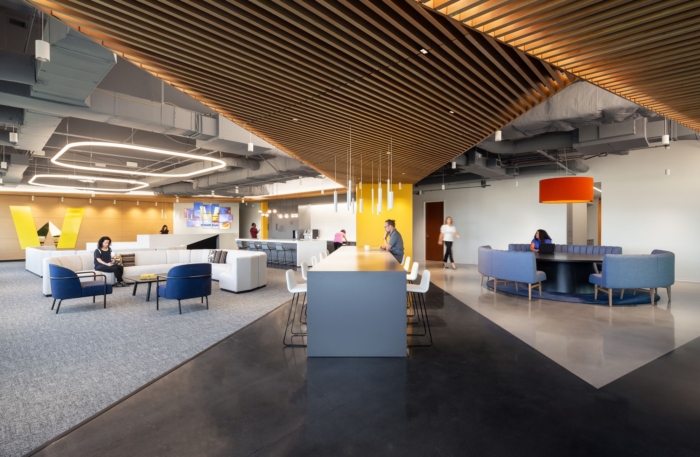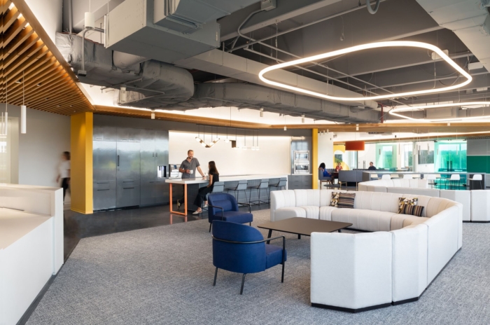 至关重要的是,设计团队在选择实施的空间类型和设计方面要有正确的基调。与以前的办公室不同,该团队选择让员工沉浸在品牌时刻中,入口唤起温馨的客厅和其他设计元素,将访客吸引到公司丰富的历史和文化中。#办公空间设计装修公司#