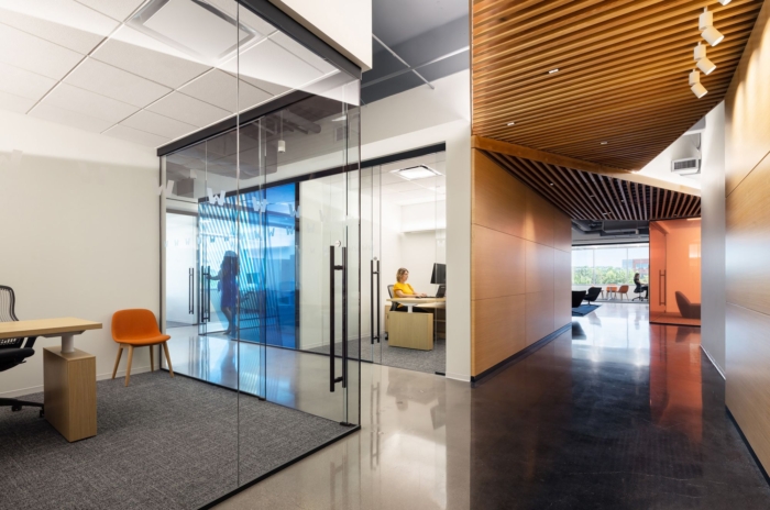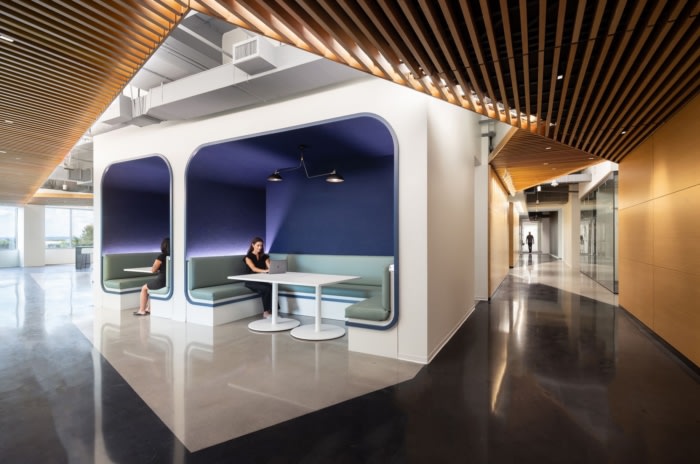 新空间根据员工想要的工作方式提供多种空间选择。用于大型私人会议的封闭会议室,专门用于主题专家,研究人员和思想家的小型办公室,用于低头专注的工作,宽敞的会议室和休息区,都可以在办公室的两层脚板上找到。#办公空间设计装修#