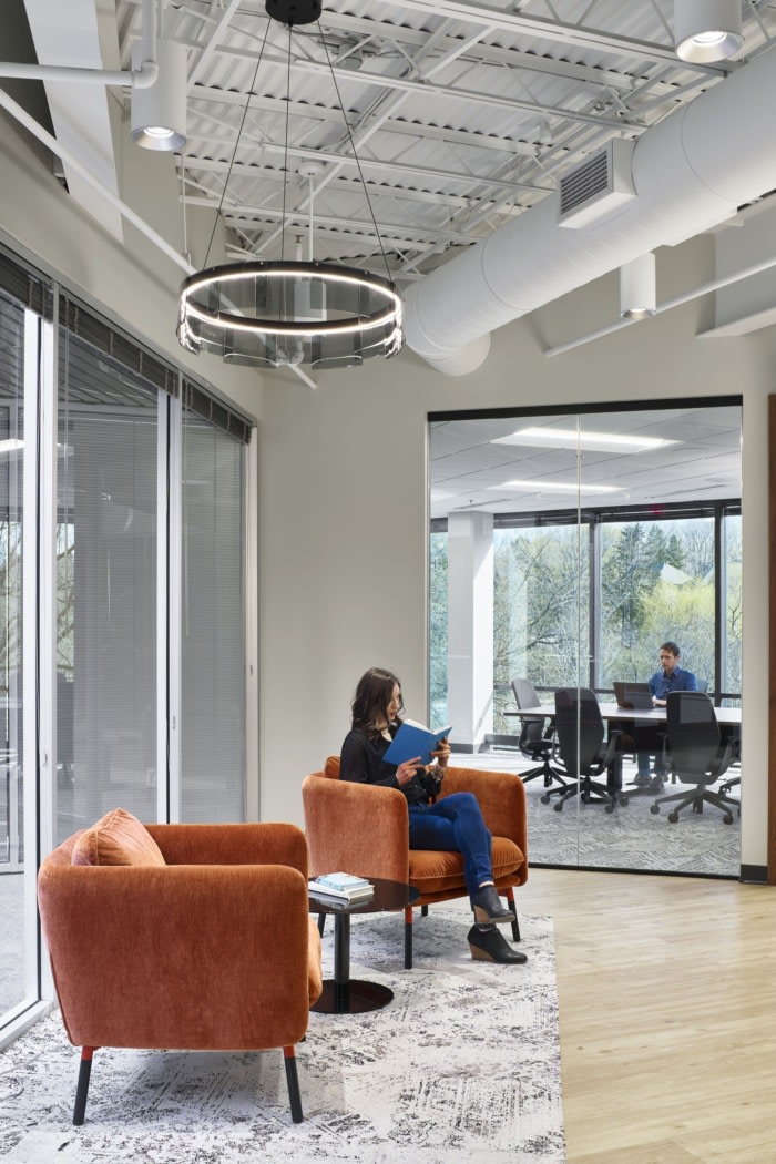 办公室设计装修:柔和的大地色调被精心融入家具和饰面选择中