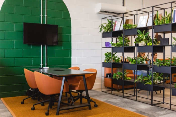 鉴于建筑的高天花板,设计师战略性地在整个空间中放置了花盆,以增强声学效果并抑制过度噪音。每个花盆都配备了隔音垫,以进一步优化吸音。植物本身在吸收声波方面也发挥了重要作用,有助于营造更愉快的听觉环境。#广州办公室装修设计公司哪家好#
