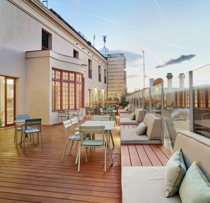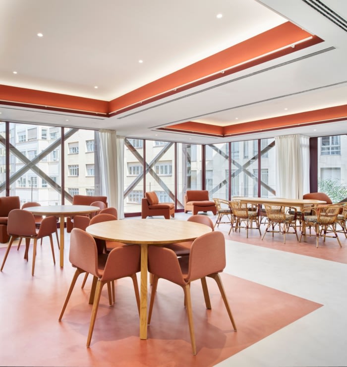 在共享的开放和健康空间中进行协作工作,具有良好的照明和通风,并使用优质材料和工艺技术来创造时尚、简单和舒适的工作条件。它们是混合空间,结合了工作和研究、非正式会议、文化活动和“在家”的感觉。木材、陶瓷、大理石、天鹅绒、藤条、软木和棉织物等材料的选择突出了这种材料和时间的回归。#办公室装修设计案例#
