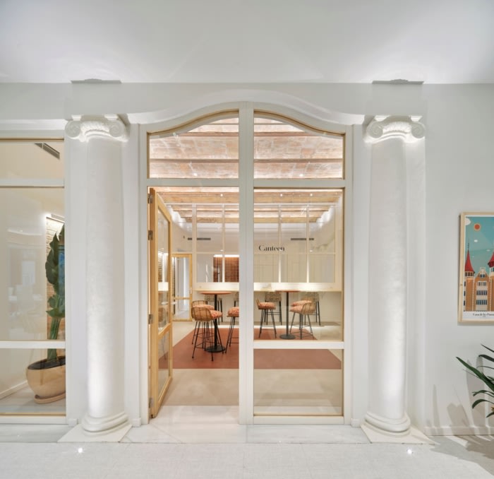 该设计旨在重现经典雅典娜神庙的现代版本。它们是混合空间,结合了工作和研究、非正式会议、文化活动和“在家”的感觉。木材、陶瓷、大理石、天鹅绒、藤条、软木和棉织物等材料的选择突出了这种材料和时间的回归。#公司办公室装修设计案例#