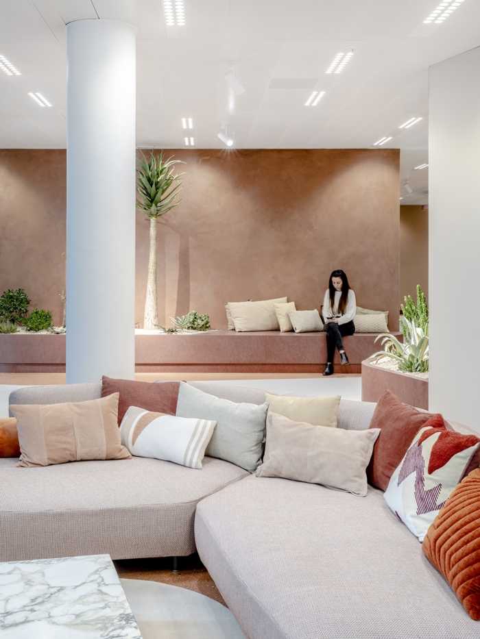 室内设计融合了景观建筑,亲生物设计和环境心理学原则。它以我们的“办公室即景观”概念为特色,每层楼代表不同的自然景观:沙漠、森林、田野和山脉。这些场景将工作空间转变为一个促进创造力、运动、专注和健康的生态系统。#办公室设计#