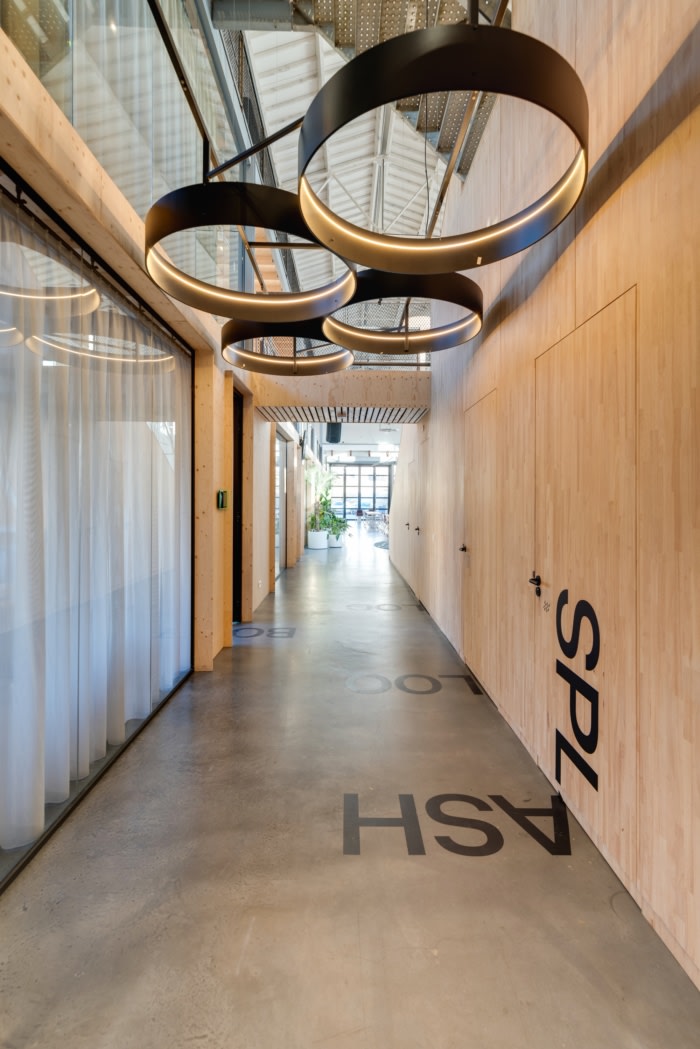 地板饰面来自以前的火车和木板,用作房屋的屋顶板?;炷梁筒A奖换厥绽?,所有的照明都是从积压的产品、用完或重新装修的部件中获得的。#办公室装修设计#