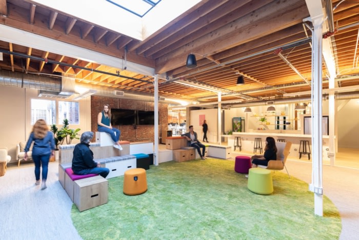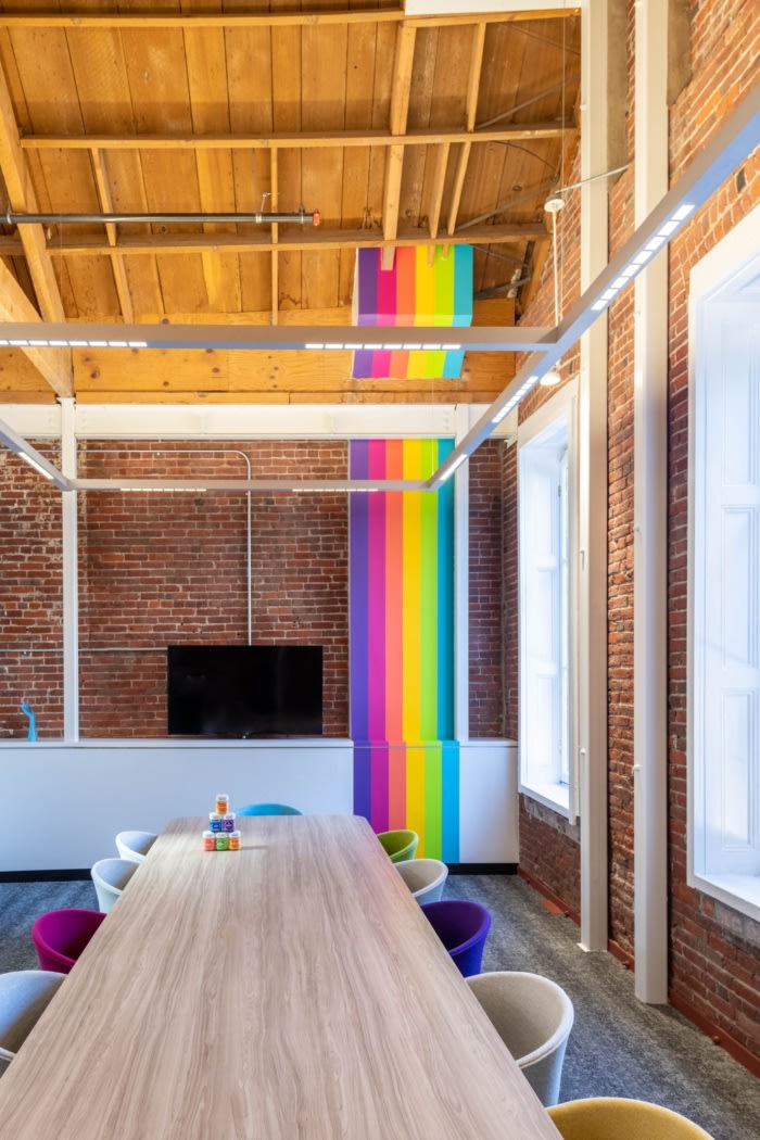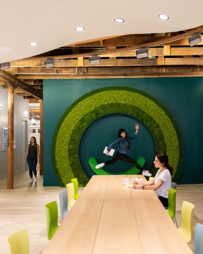 设计挑战围绕着如何创造符合企业品牌标识的空间体验。因为快乐是用来传播的,所以设计师们在奥利营地里摆满了通过有趣、明亮、快乐的时刻分享经验的地方。每个角落都有户外的艺术表现,提醒员工大自然是健康和保健的终极背景。#高端办公室设计#