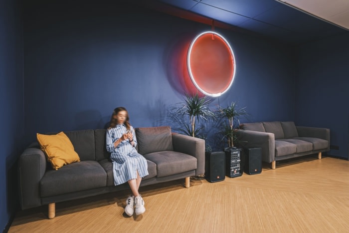 办公室空间设计:融合了大胆的色彩、霓虹灯和金属表面