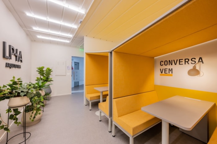 在咖啡室、用餐和欢乐时光的团队空间中实现了欢快设计。咖啡室仍然以丰富多彩和俏皮的色调,收到了一个有趣的“lambe-lambe”,反映了员工的休闲生活方式和高昂的精神,除了一个圆形的柜台灯,像项目蛋糕上的樱桃一样调情亲生物。#办公室装修效果图#