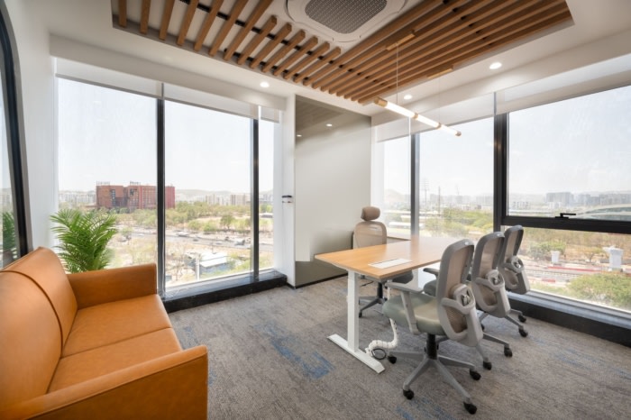 客户特别要求采用裸色柔和的配色方案,将其融入整个办公室,以营造平静而温馨的氛围。工作站布局采用独特的梯形设计,最大限度地提高了功能和美感。工作站中使用的??榛揖呶占湓鎏砹艘凰肯执泻褪视π?。为了确保顺畅的移动和沟通,选择了工作站的全方位循环布局,促进了协作和轻松访问。#办公室设计装修#