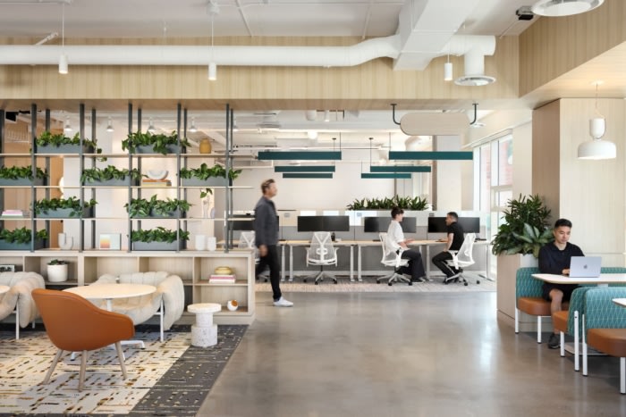 办公室设计效果图:融合了分层的照明方法、柔软的家具和温暖的调色板