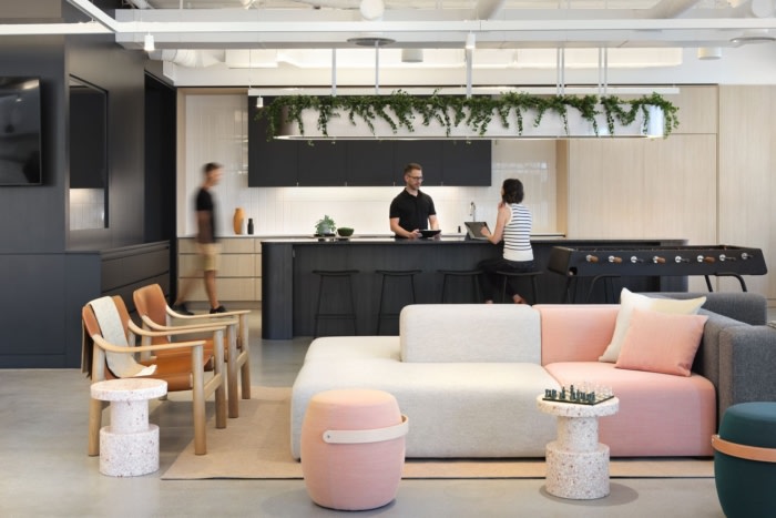 办公室设计旨在反映住宅的感觉和居家般的舒适感,以及现代办公室的设施和技术。空间围绕着一个色彩鲜艳、相互连接的楼梯,大小不一的电话室集群打破了办公室的工作点,并为集中精力提供了喘息的机会。