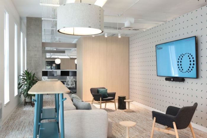 设计融合了分层的照明方法,柔软的家具和温暖的调色板。公司品牌重塑允许 Edit 使用这些概念和颜色来为办公室的调色板、标牌和寻路提供信息。墙面覆盖物的所有东西都是定制设计的,参考了企业品牌重塑的形状和颜色。#办公室设计效果图#