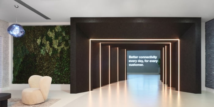 新总部每个区域的强烈幸福感、视觉冲击力和品牌特色做出了重要贡献。一楼的“幻觉枝形吊灯”融入了他们的标志,照明的隧道邀请人们走向游客套房,营造出强烈的认同感。然而,当你登上楼层时,有一个更微妙的品牌调色板,用于确保人们可以在没有持续的公司信息的情况下放松和工作。#办公室室内设计#