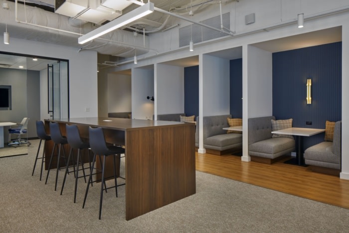 透明度对企业来说很重要,这影响了在室内安排私人办公室和会议室的决定,而开放式办公环境、社交空间和分组会议区则获得了自然光,同时为员工创造了视觉联系。#广州办公室设计装修公司#