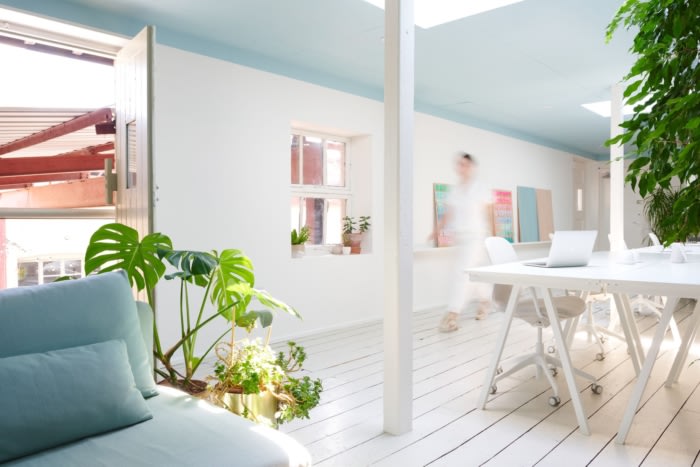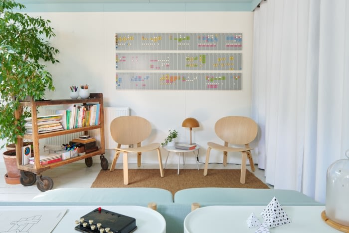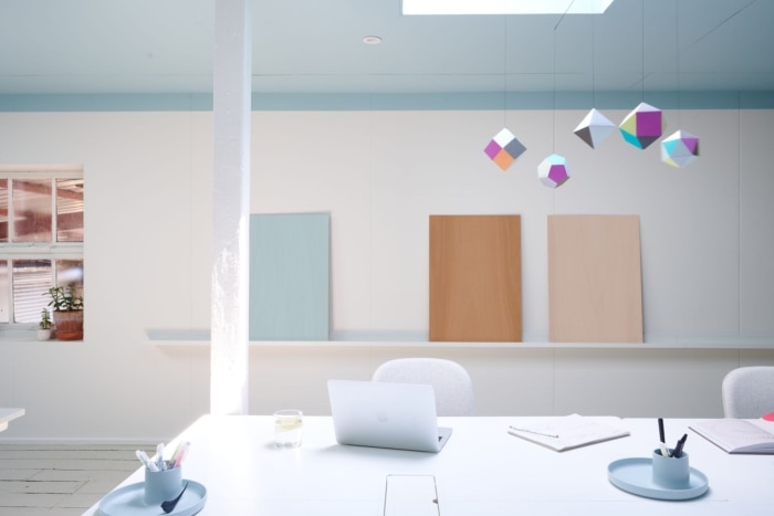 该设计的灵感来自该地区和邻近的里士满公园丰富的植物挂毯。他们与朗达工作室富有远见卓识的头脑合作,精心策划了一个散发着宁静和温暖的调色板。柔和的色调营造出宁静而诱人的空间,激发创造力。工作室空间的天蓝色彩绘天篷营造出室内外的联系,而浅陶土、茧状的会议空间在视觉上与当地建筑乡土相呼应。#办公室装修#