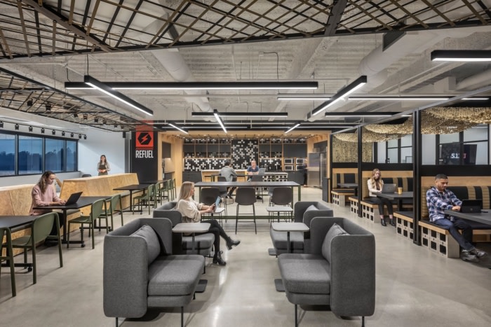 该空间设计的核心是一个员工参与区,通过一种有意识的迁移模式,鼓励从翼到翼,以象征和字面的方式将团队联系起来。像员工咖啡厅这样的共享空间配备了移动家具,可以根据场合进行定制——无论是快速的团队聊天还是全公司的全体员工。#公司办公室设计装修#