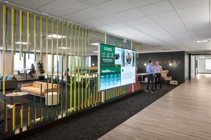 整个空间使用的绿色色调反映了企业品牌色彩,整体的土制调色板将室内与周围的内布拉斯加州自然景观连接起来,这种有凝聚力的设计贯穿了整个翻新项目。其结果是一个真正转变的工作场所——一个人们想去的地方,一个可以在不断发展和庞大的工作场所生态系统中竞争的地方。#办公室设计装修公司#