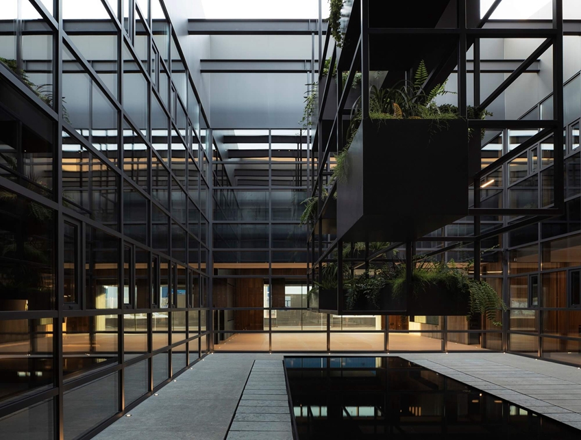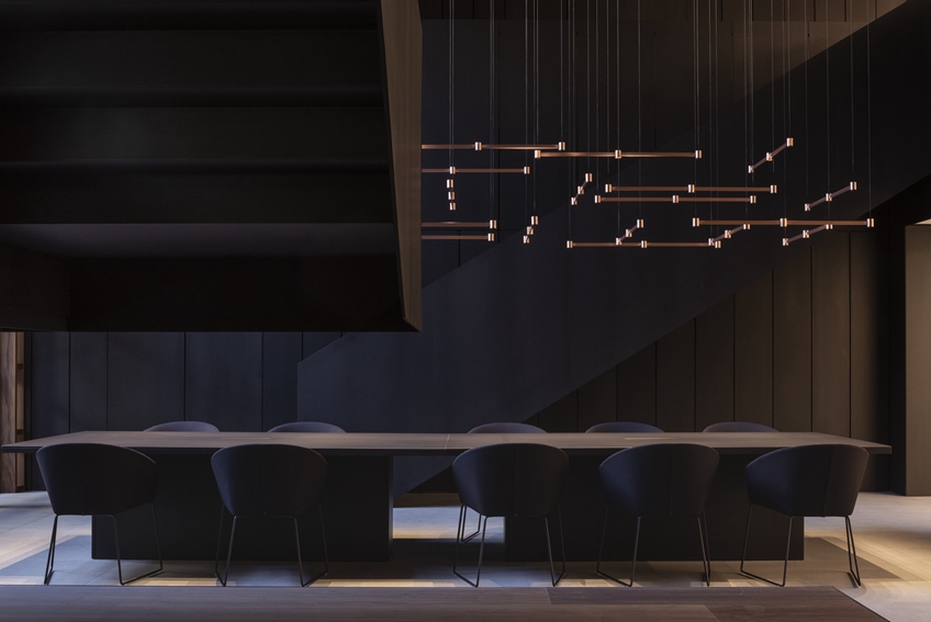 来自西班牙的一个黑色系办公空间设计,对于光的利用和角度的切入值得细讲一番,空间不仅仅是使用这么简单,它背后还包藏着艺术。无论是光线还是其他装饰品,从通高的门厅开始选用胡桃木,在不同部分布置了细长板条状的家具,让黑色钢铁作为调和融入其中,将接待桌和通行门与工作区结合。黑色有一种奇妙的质感,对于光的敏感度也对高,如果想用两种最有区别性的色彩去创造对比,这种方式非常适合了。