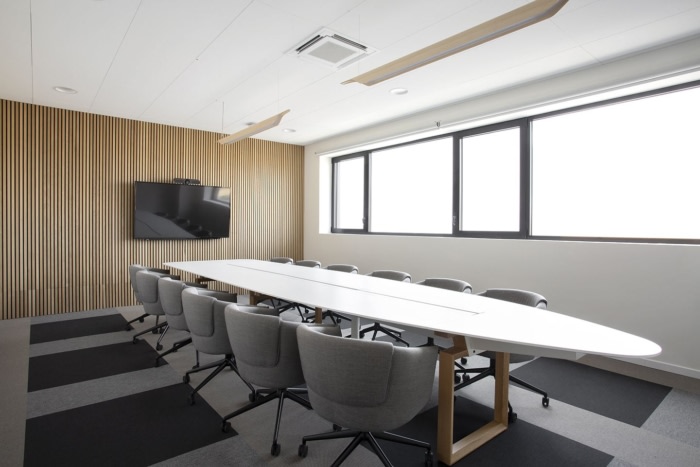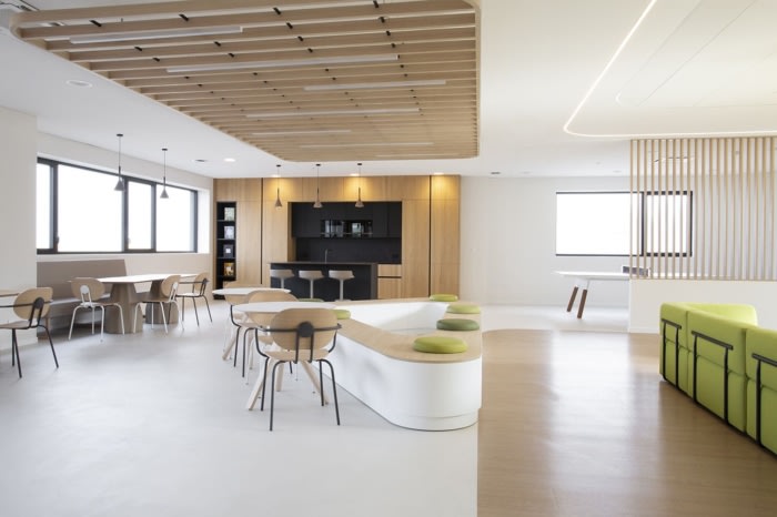 室内庭院的存在以及OSF希望营造温暖温馨的氛围等因素自然导致建筑师采用以植物为基础的自然方法,他们希望反映在木材和石材等材料的选择以及油漆颜色和家具的选择中。#办公楼设计装修公司#