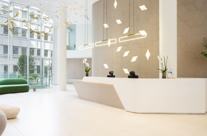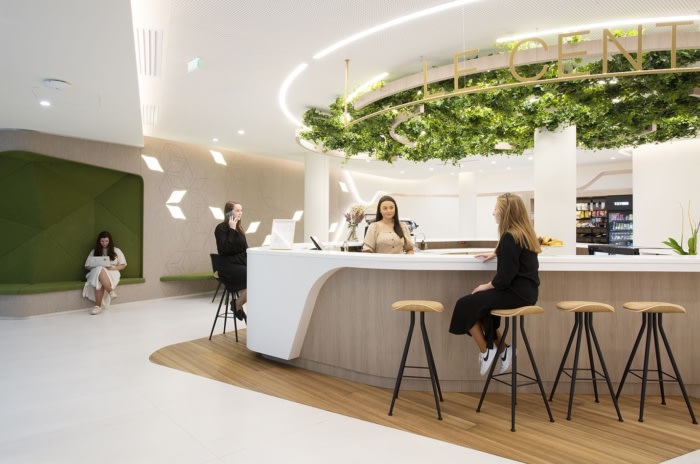 在设计这座建筑时,设计师的想法是创造一个优质、高质量的建筑,具有非常高效的地板和大量的绿地,有屋顶、植被、花园和露台。它是专门为用户设计的,最重要的是为了他们的舒适。他们的唯一任务是创建一个非常高标准的建筑,以匹配用户的个人资料。#生物科技公司办公室设计案例#
