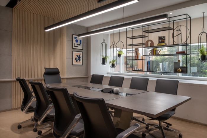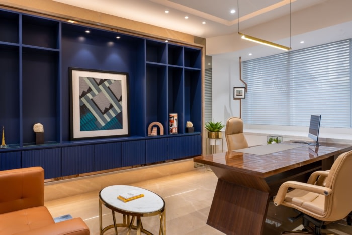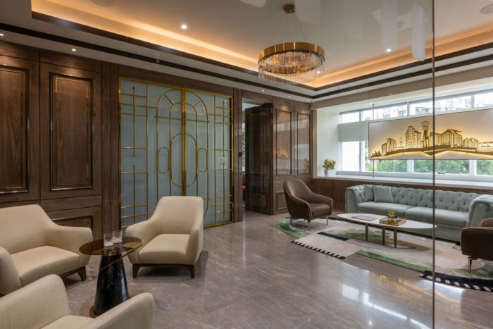 定制的办公桌和沙发、金属艺术品和个性化的搁架系统被创造出来,为定制的触感而设计,整个办公室的窗台上都有各种装饰品,包括描绘开发商著名项目的激光切割金属背光面板、金属架子和展示柜、悬挂的艺术框架和盆栽植物。#知名办公楼装修公司#