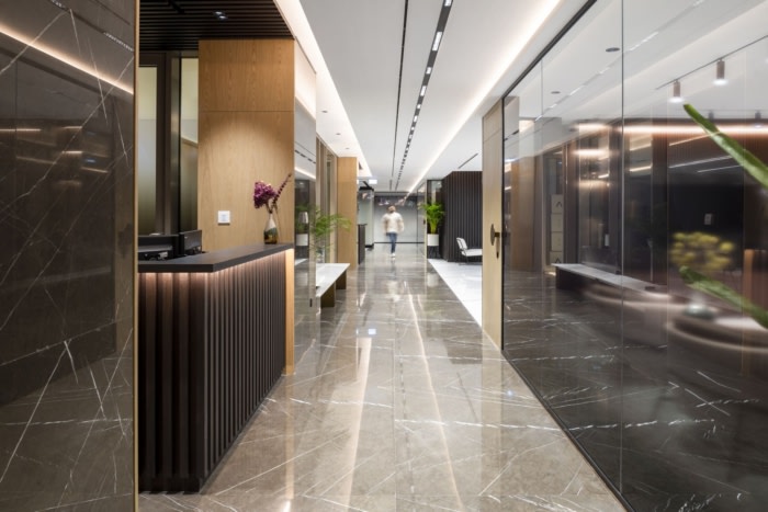 它考虑了客人到达的顺序,提供了从接待到协作空间的接待元素。遵循传统的空间规划布局,所有玻璃幕墙的办公室都沿着楼板的周边,为客人和员工提供温暖和温馨的感觉。#广州知名办公室装修公司#
