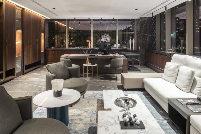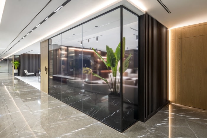 木材、豪华饰面和高端家具等天然材料被用来吸引人们对办公空间豪华外观和感觉的关注。此外,该设计反映了公司的企业文化和可持续价值观——干净、明亮和细节丰富。#办公室装修公司#
