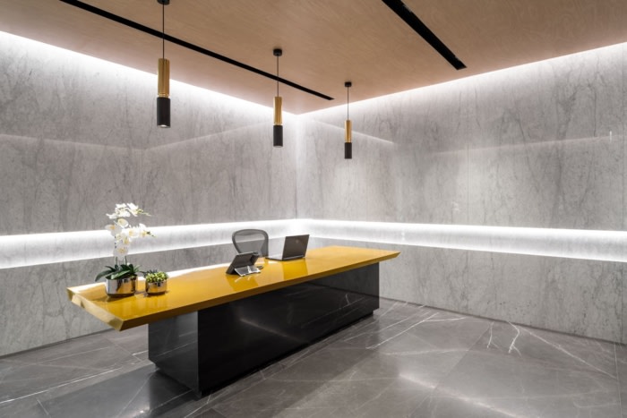 办公室装修设计:有节奏的木板条纹理为办公室设计增添了动感