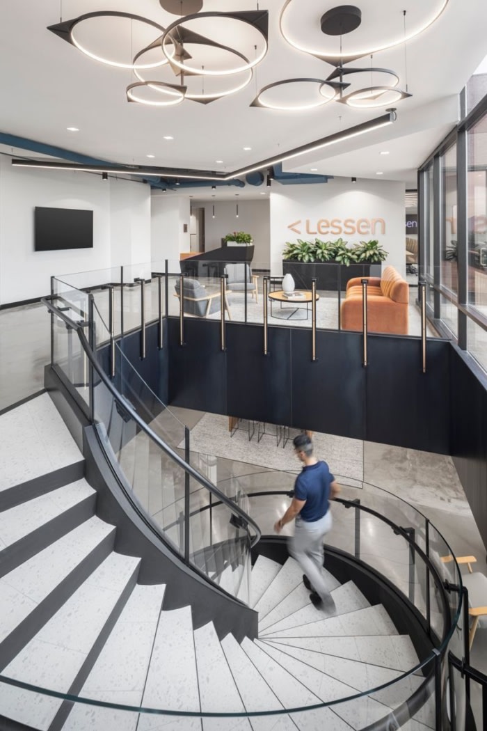 办公楼装修方案:设计中特别关注亲生物的概念 日期:2023-12-19 10:57:06 人气:314 从主楼层通往次层的楼梯经过翻新,并用钢包覆。该项目设有地下酒吧风格的行政休息区、温馨的书架林立图书馆空间和咖啡吧。该设计包括开放式和封闭式办公室、协作空间、培训室、小型会议室和电话室以及两个休息室。#办公楼装修方案#在设计中特别关注亲生物的概念,因为团队在办公室周围的战略区域安装了固定的花盆。所有办公室都指定了Teknion玻璃幕墙,而整个办公室都使用了重点照明。#办公楼装修公司# 上一篇: 办公室装修设计:有节奏的木板条纹理为办公室设计增添了动感 下一篇: 办公楼设计装修:现代风格的画廊拥有令人印象深刻的艺术品展示