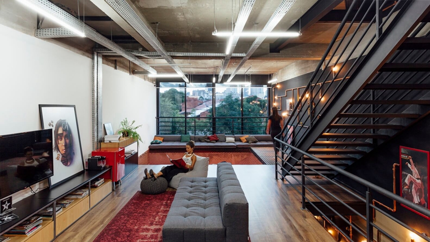 来自巴西的一个广告公司办公室设计,分享这个空间是,主要是想分享它的氛围,这一类有创意的自由感较强的办公室,能带来更强的工作效率。为了创造自由流动的空间,传统模式首先破除掉,这和与公司的创意文化保持一致,广告公司需要更多的创意和设计,而创意不可束缚。