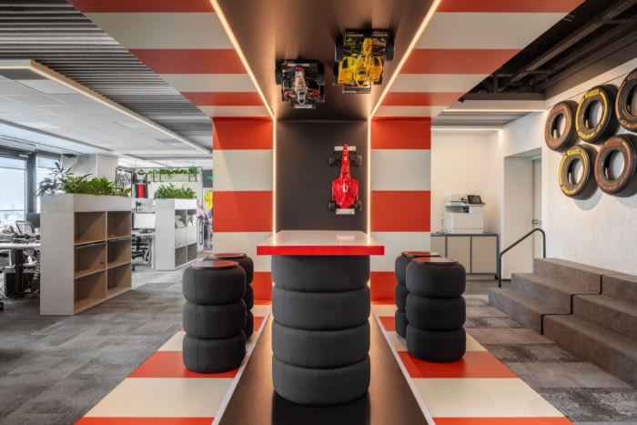 对于不同的协作区域,从企业开发的游戏中选择了标志性的场景,建筑师巧妙地将其转化为现实。其结果是一个办公空间,其特点是工作环境的清洁度与分散在空间周围的“主题区域”的颜色和形状爆炸形成鲜明对比。#办公室设计装修方案#
