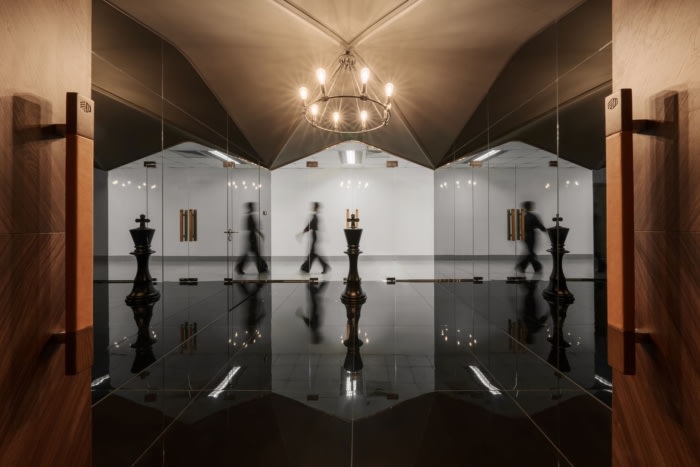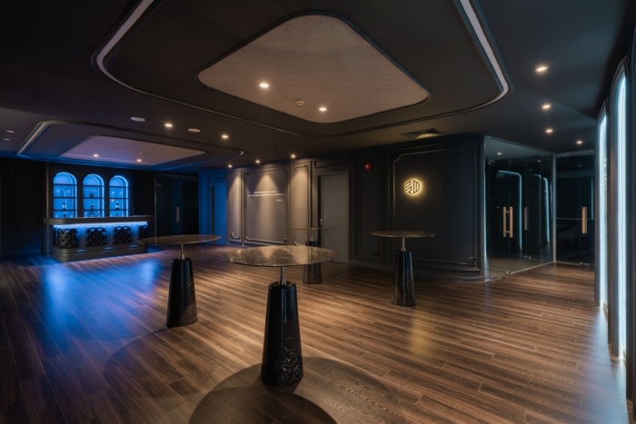 将现代设计风格与经典风格相结合时,对比一致。在一个现代、新颖和时尚的空间中,经典元素作为一个独特的亮点出现,为体验空间的人带来感官上的转变。黑色、灰色和棕色的主要色调......结合黄色金属细节,营造出神秘而强大的空间。此外,使用皮革、石材、木材等优质材料...除了经典设计风格典型的精致细致的细节外,还有助于营造豪华高贵的空间。#办公室装修设计#