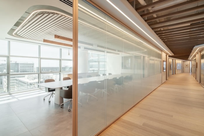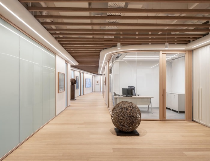 虽然该项目的设计注重美学,但它仍然是一家功能齐全的投资公司,致力于满足客户的需求。带有隔音木梁的圆形天花板和兼作走廊的艺术画廊只是反映公司致力于为客户创造一个温馨而优雅的空间的一些建筑特色。项目中使用的材料灵感来自大自然,并有沙色、绿色、白色和木材的色调,营造出一个诱人而平衡的空间。#办公室装修#