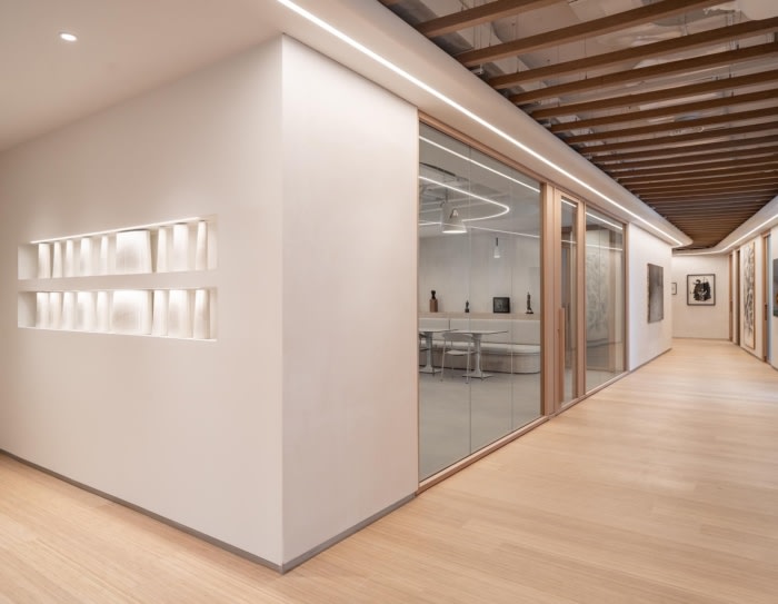 伴随该项目的主要价值观是极简主义、流动和温暖,这导致了一个既实用又美观的空间。最终,该项目的设计和艺术画廊有助于增强客户的体验,并促进积极和富有成效的工作环境。#办公室装修公司#