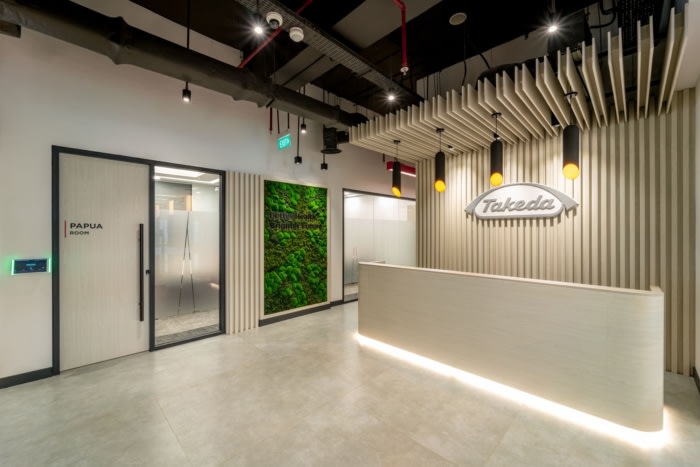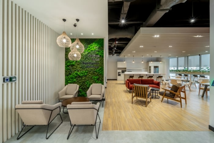 办公室设计:苔藓墙作为亲自然元素被纳入其中 以提升工作空间的活力