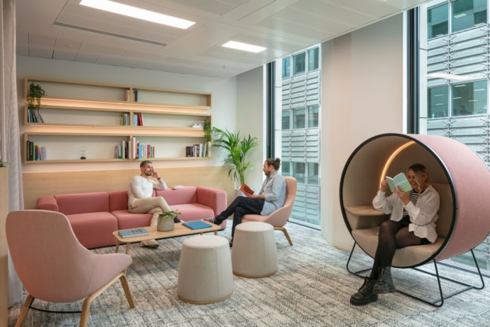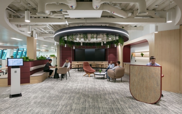 新的开放式办公室采用椭圆形设计,反映了邮局品牌。这个明亮、现代和令人兴奋的新空间看起来很时尚,但它也是多功能的,具有灵活的社交空间、集中的工作区、增加的会议室设施和用于广播公司范围会议的工作室。#知识城企业办公室装修#